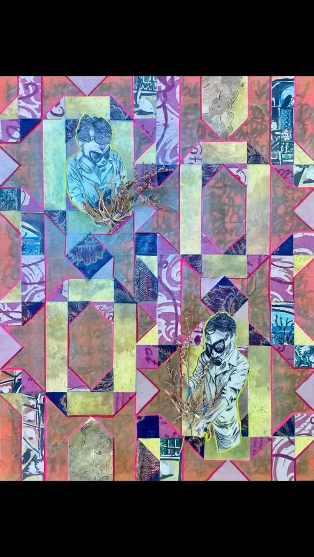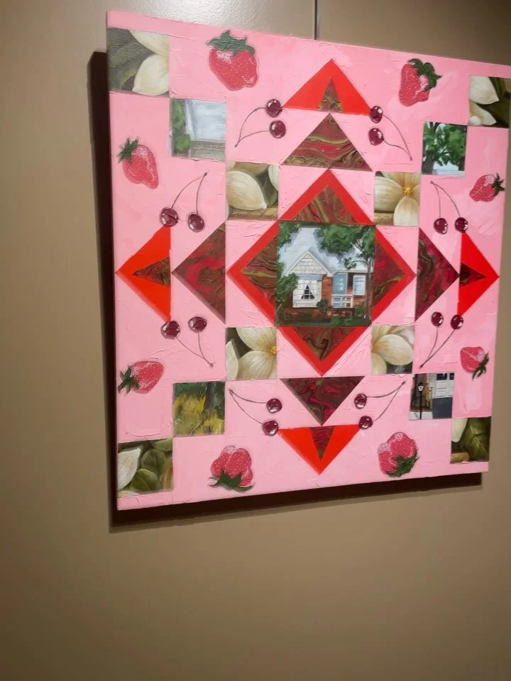 I am a professional mixed media artist in Knoxville, TN; born and raised. I am currently working as one of the managers at Jerry's Artarama. I have a bachelors of arts in Graphic Design from Maryville College. I have participated in a numerous number of regional art exhibitions throughout my life in East Tennessee. As well, I'm teaching at a variety of art and crafts centers throughout the area. My work is an exploration of my southern roots in East Tennessee and the relationships I have cultivated as an adult. Carefully crafted topographies are woven together in quilt like patterns telling the stories of the people I love or have loved. The bright and saturated colors are inspired by the memories, impressions of events both how they did and did not actually appear. These vibrant colors coupled with serious titles evoke a feeling of whimsy and heaviness that we all face as human beings.
